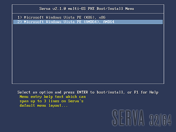 Normally, you would need to have access to the network DHCP server (the one that dishes out IP addresses to all the computers on the network) in order to configure PXE booting. The unique thing about SERVA is that you don't need to fiddle with the network DHCP server at all. This is a real boon for home users who usually use their router as the DHCP server. It is also a boon for companies who have a multi-server network and don't allow or want their employees to fiddle with the servers.